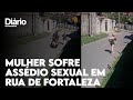 O momento que o homem passa de moto ao lado da mulher e pega nas partes íntimas dela foi flagrado por câmeras de segurança. Assustada, a moça sai correndo na direção oposta, enquanto o motociclista vai embora.